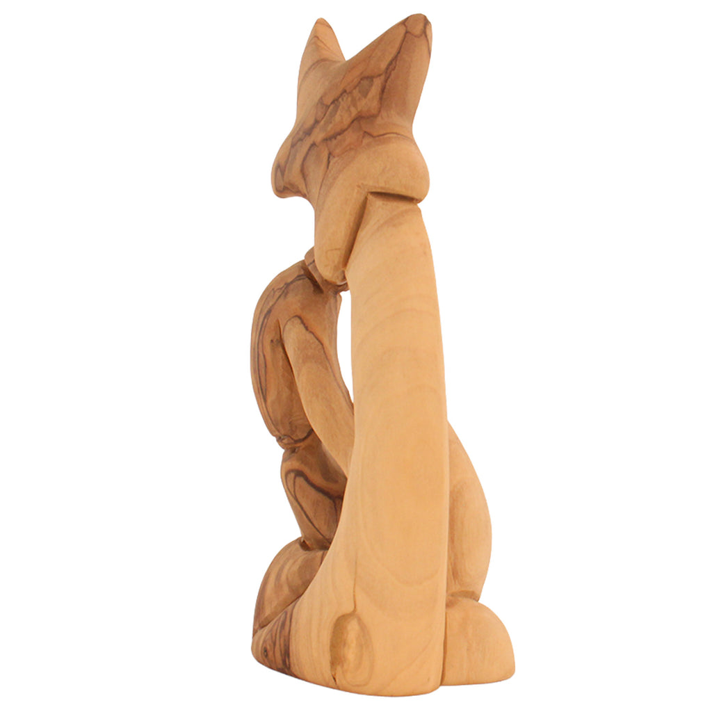 A: Keep the figurine in a dry indoor place, dust it gently with a soft cloth, and avoid harsh cleaners or soaking in water so the natural wood grain and finish remain beautiful over time.